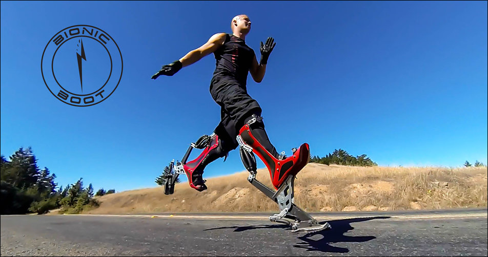 Американский инженер Кихи Сеймур создал ботинки Bionic Boots, позволяющие даже не спортивному человеку бежать со скоростью до 40 километров в час! Такая скорость позволит соревноваться даже с велосипедистами, тем более, что бежать можно не только по дорогам, но и по пересеченной местности.